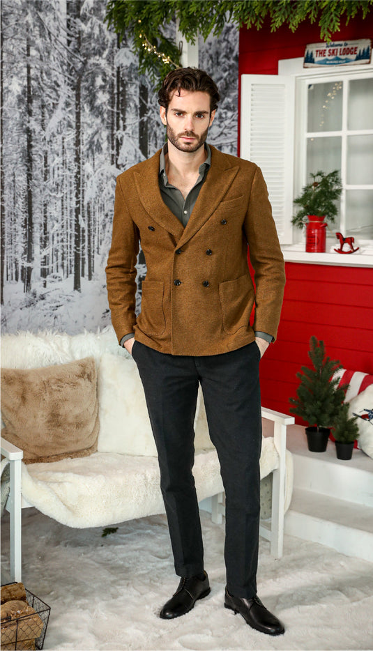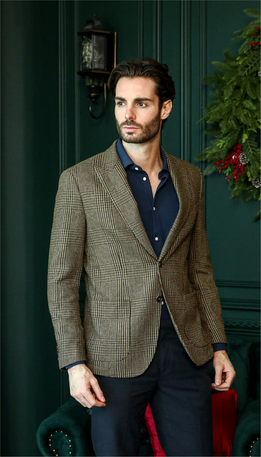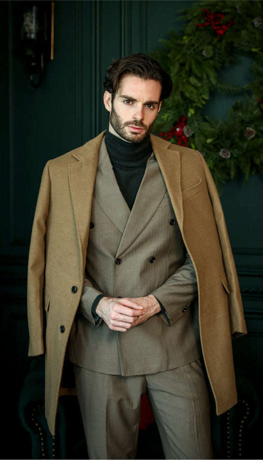 Single-breasted men's suit with classic single-pleat trousers, in pure combed wool with herringbone weave