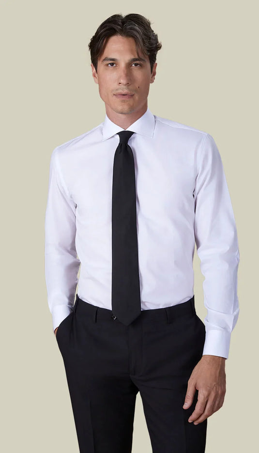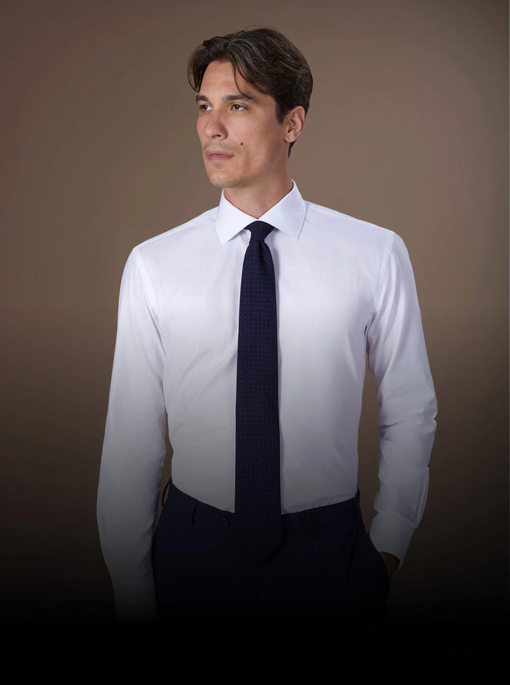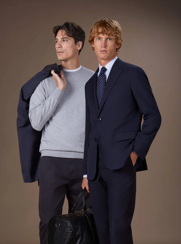 Single-breasted men's suit with classic single-pleat trousers, in pure combed wool with a semi-plain weave
