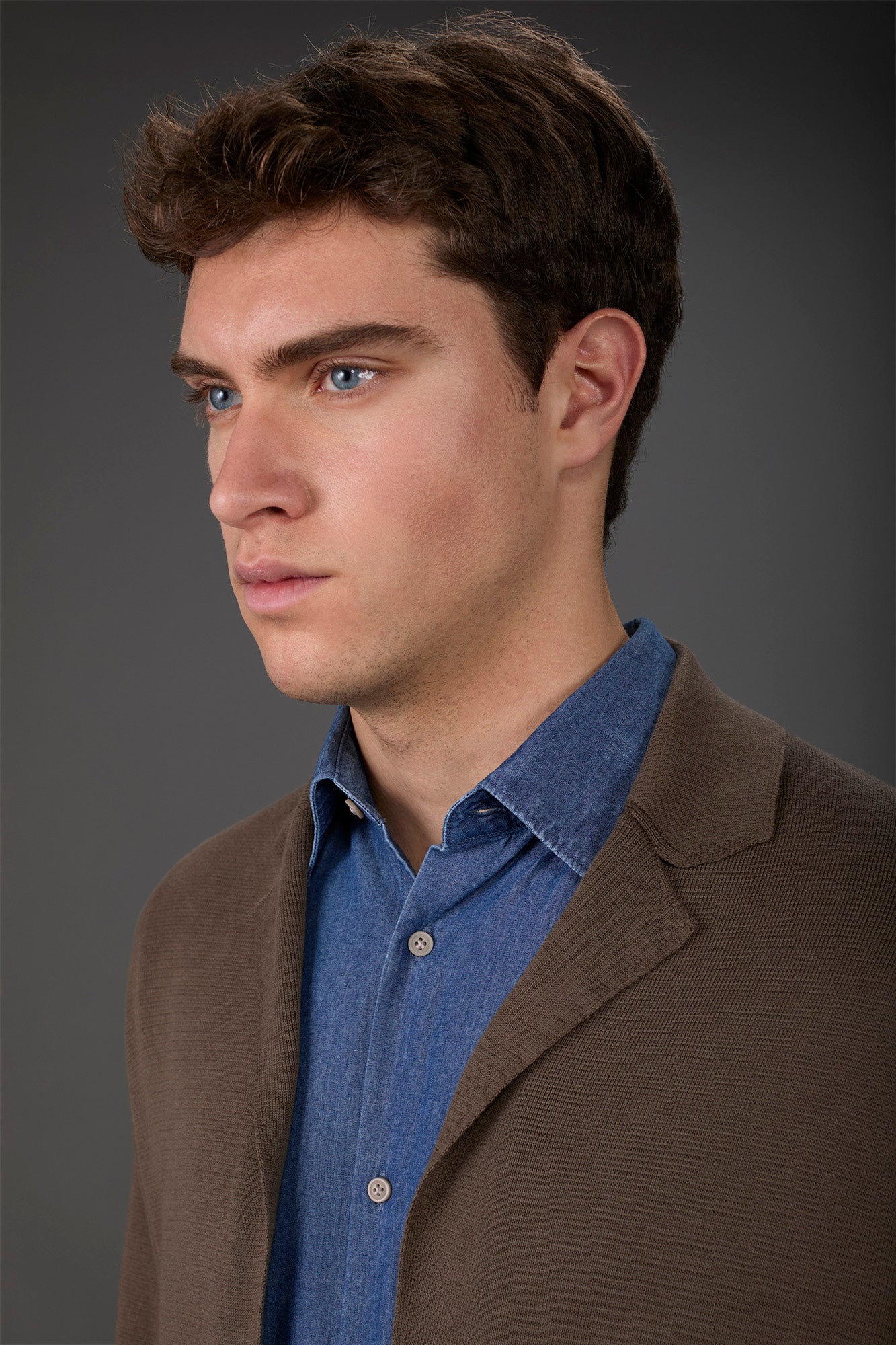 Men's cardigan with patch pockets, 100% cotton milano rib knit