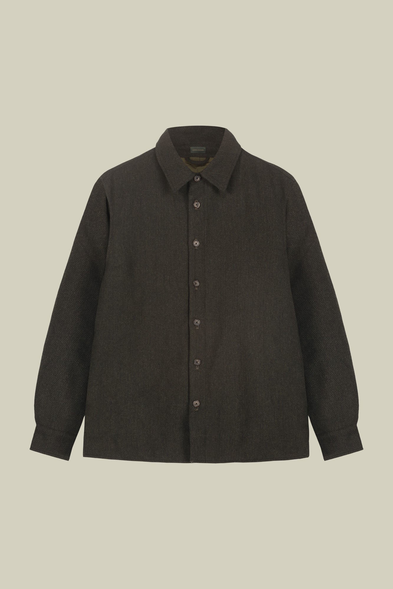 The Doppelgänger man's wardrobe is enhanced by the overshirt, a versatile garment suitable for everyday looks. Made of a comfortable wool blend, it stands out for the herringbone design of the fabric and the stitched lining with light padding. The fit is regular.