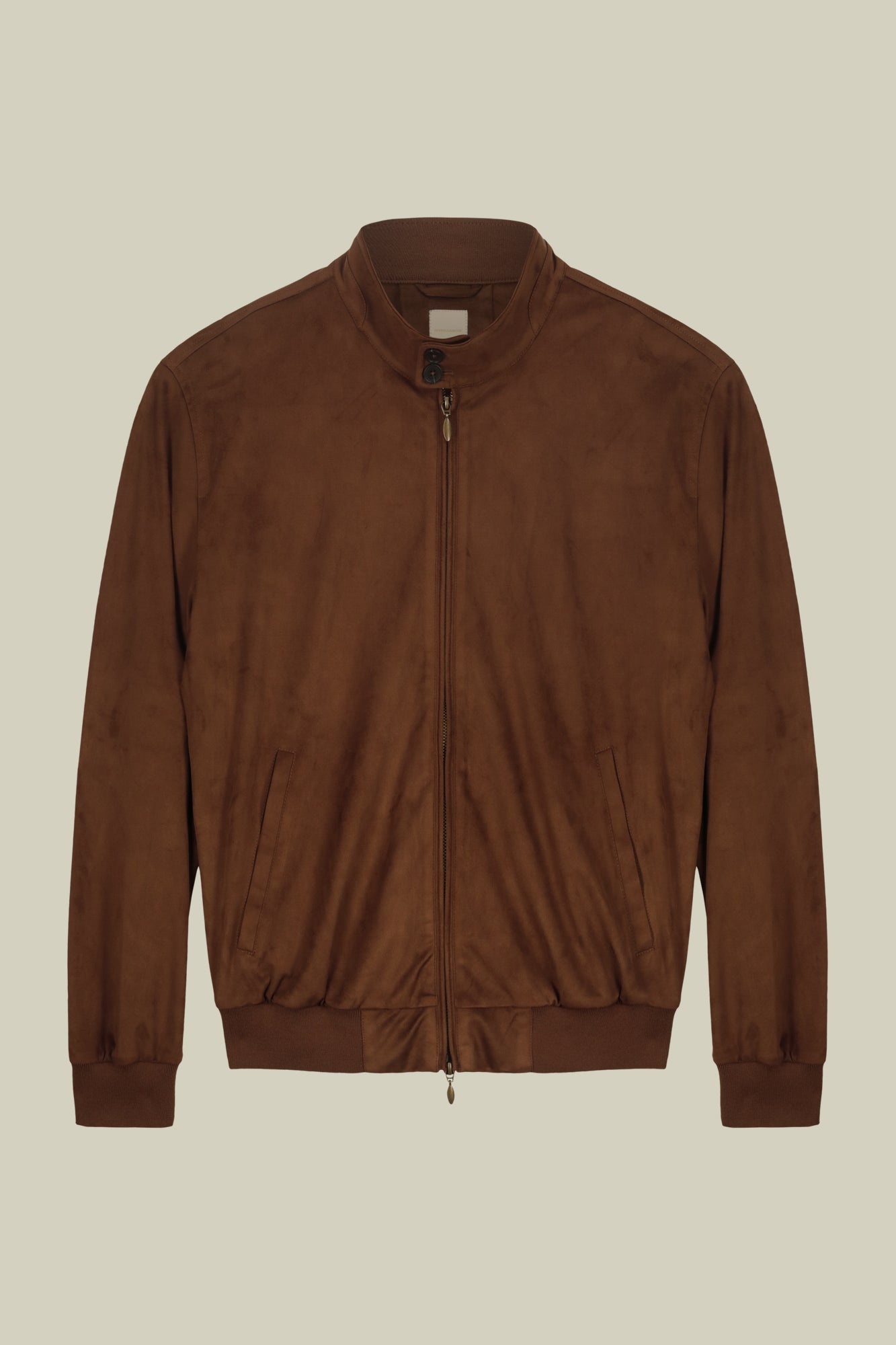 This jacket is made of suede-like fabric, with a central metal zip fastening that adds a touch of elegance. The pockets feature buttons, while the ribbed cuffs and hem give a casual style. Fully unlined, it offers a comfortable and versatile fit.