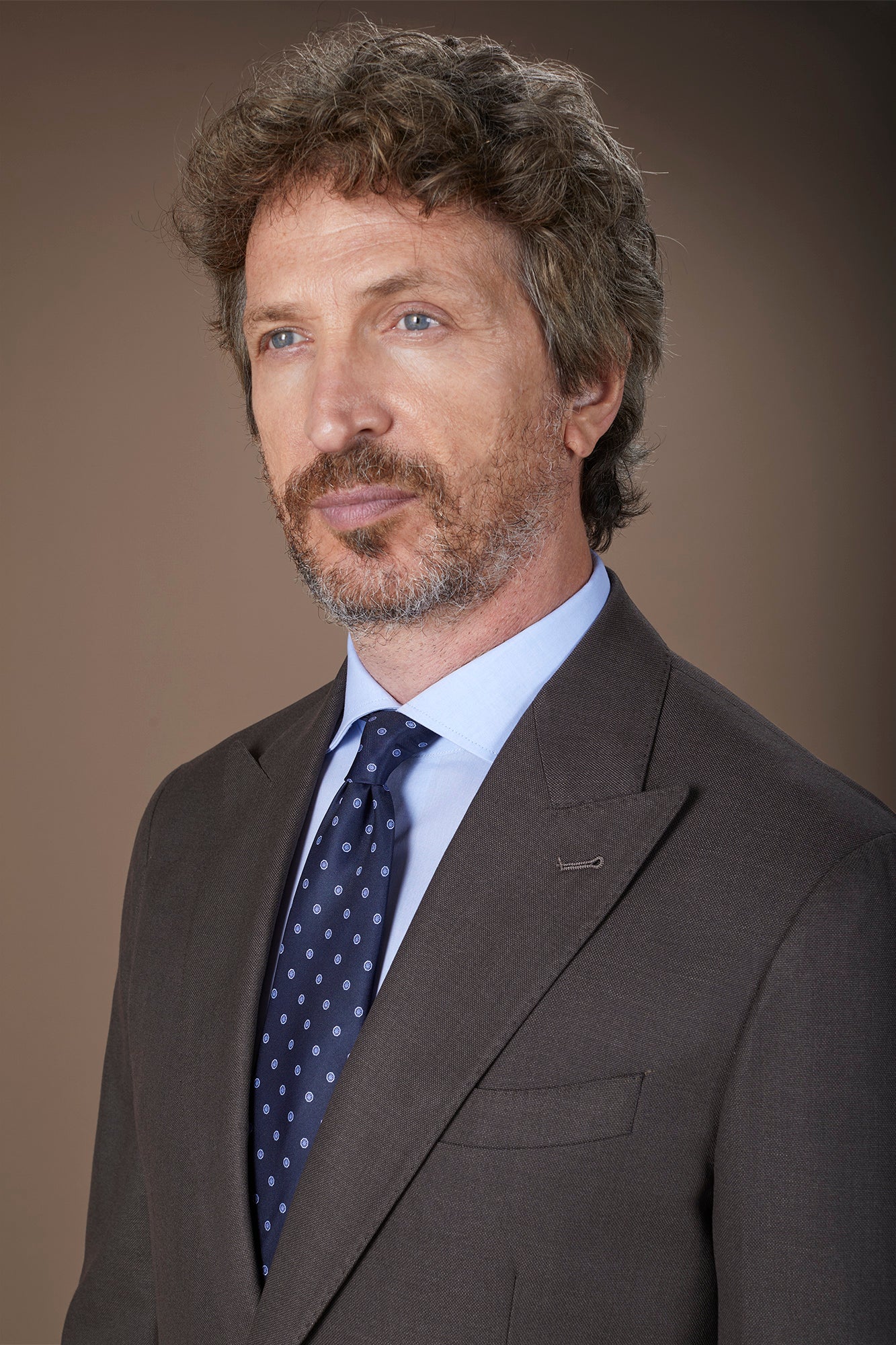 A neat alternation of light blue polka dots on a dark background creates a geometric pattern that gives this tie a dynamic feel. The clean profile and balanced design make it perfect for adding character to even the most classic of suits. Available in different shades.